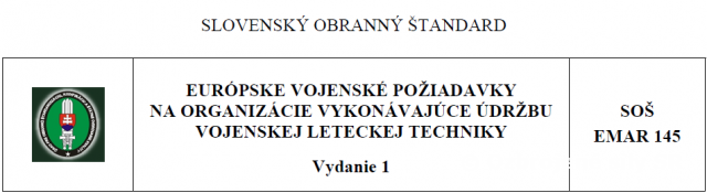 Dňa 14. marca 2012 bol schválený slovenský obranný štandard SOŠ EMAR 145 „Európske vojenské požiadavky na organizácie vykonávajúce údržbu vojenskej leteckej techniky“. Uvedený SOŠ je zverejnený v časti Dokumenty a materiály/ Národná legislatíva .