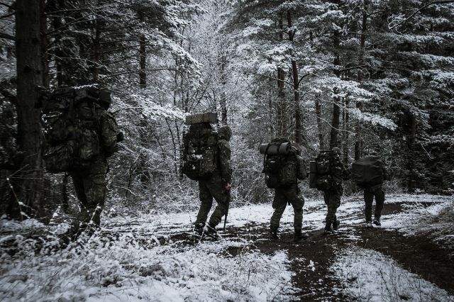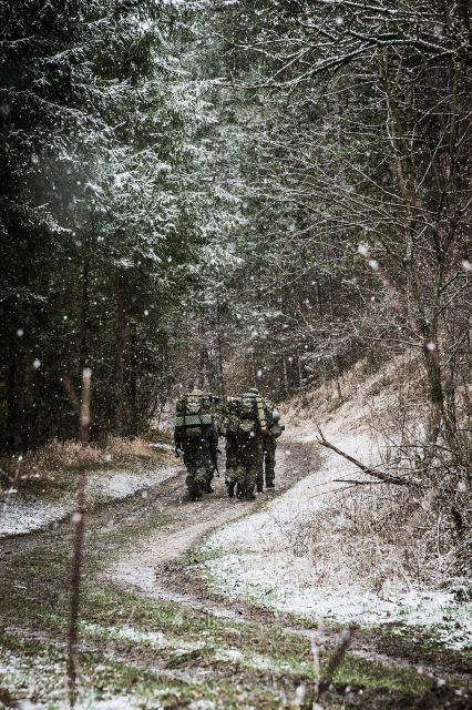 V blate vidno niekoľko párov stôp schádzajúcich z kopcov. Tmavá cesta priveľmi kontrastuje s okolitými zasneženými stromami a pozvoľna sklesáva do dediny. Z lesného ticha počuť prichádzajúce hlasy, ktoré so sebou nesú číslami označené unavené, bezmenné telá v uniformách s veľkými batohmi na chrbátoch. Mnohí z nich si v nasledujúcich dňoch siahnu na dno, no čo presne ich čaká, netušia. Pokiaľ sa nielen teraz budú držať hesla - v ťažkostiach statočnosť rastie - svoju úlohu zvládnu.